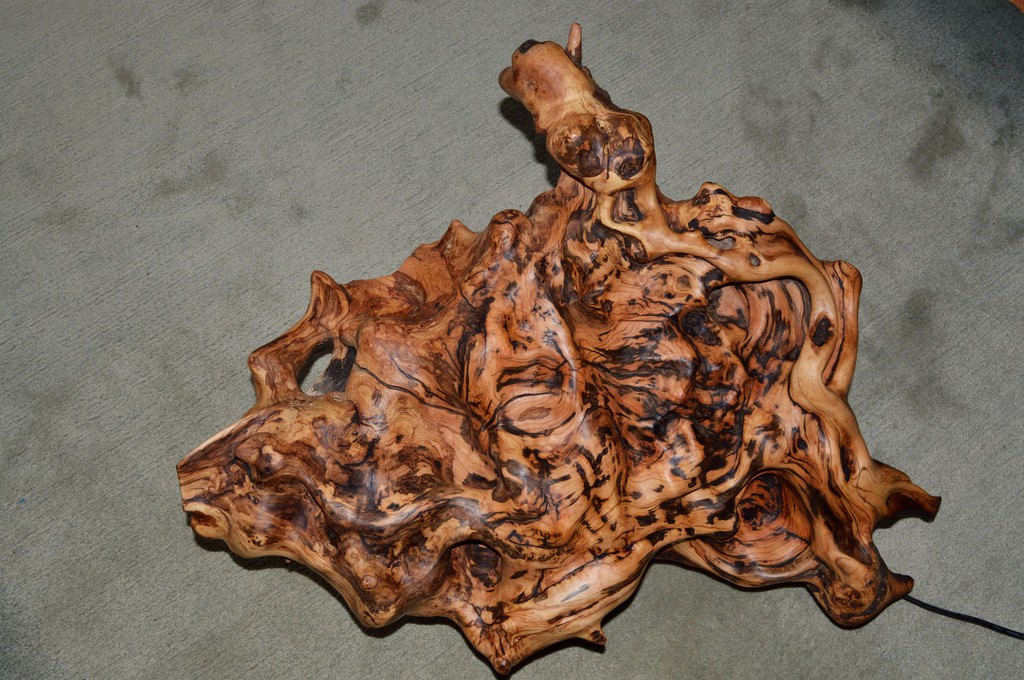 Besonderheiten: außergewöhnliche detail- und facettenreiche Holzmaserung und grandioses Oberflächenrelief mit Höhlungen, sehr altes, teilweise versteinert wirkendes Holz.