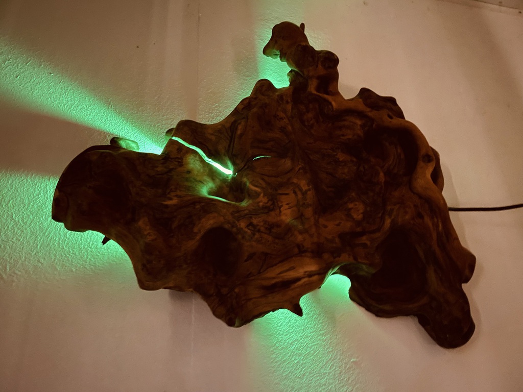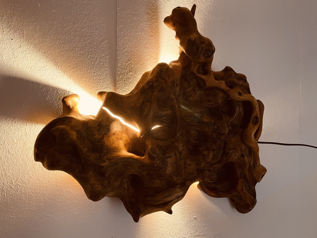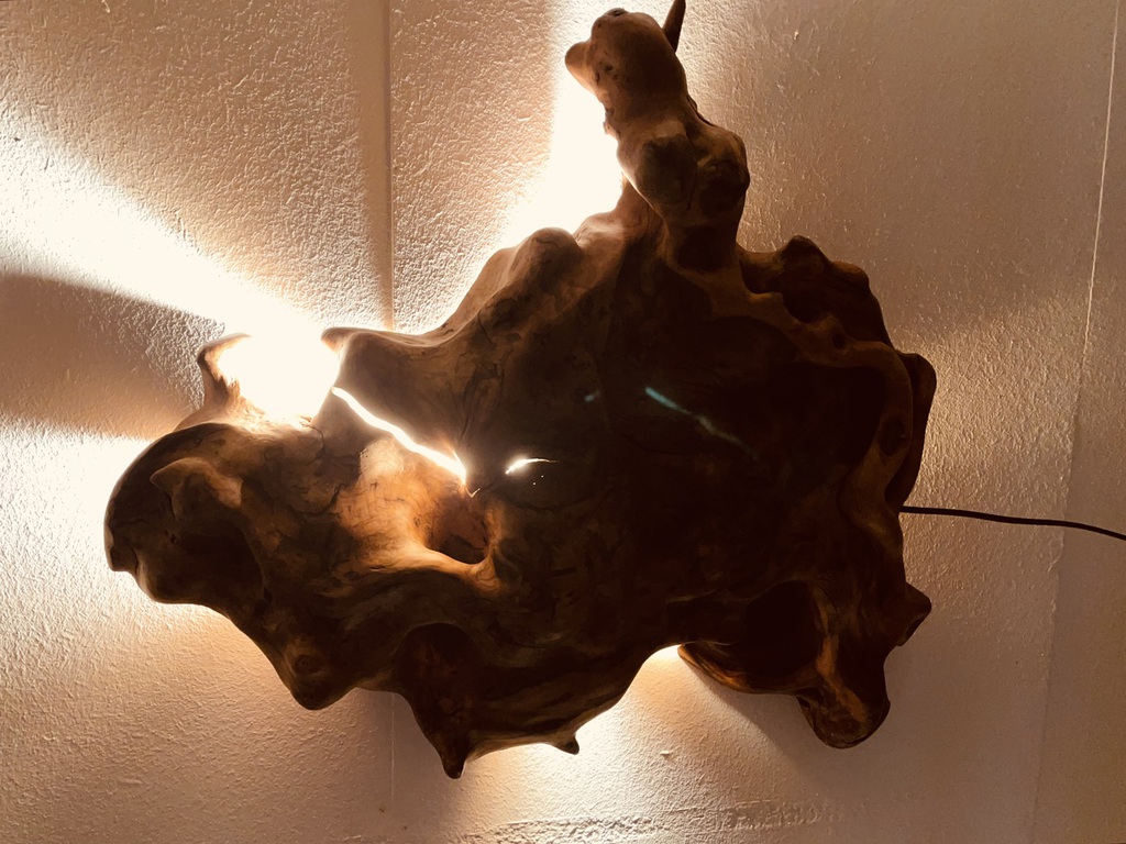 Beschreibung: Licht-Skulptur wie gewachsen, mit indirekter Beleuchtung, Wandmontage oder auf Sockel/Säule, oder hängend an Ketten, je nach Wunsch.