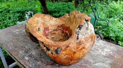 teilweise aussen und Schaleninneres fein geschliffen, mit Naturwachs behandelt und matt poliert.
