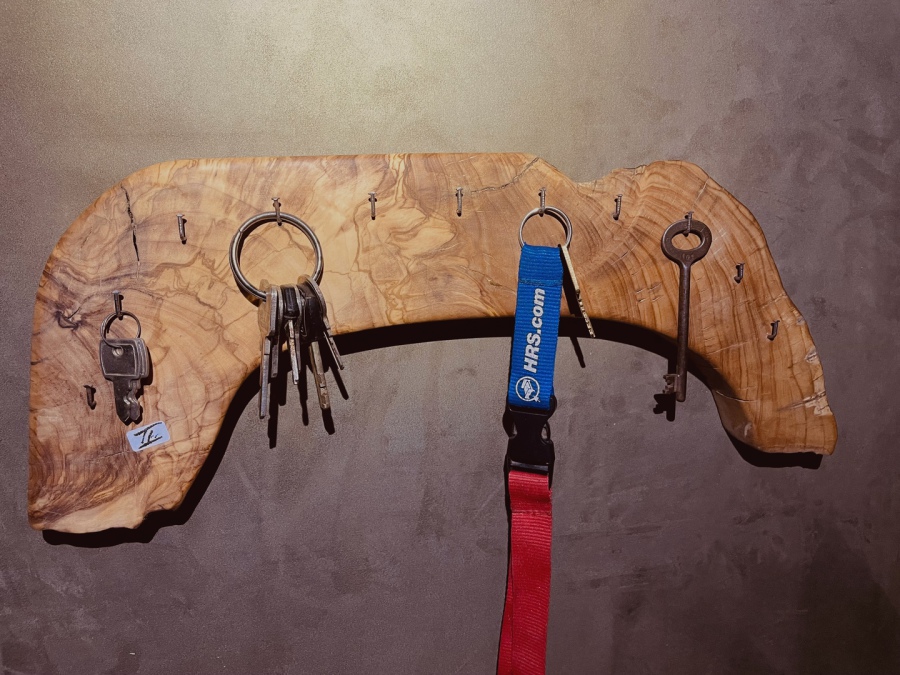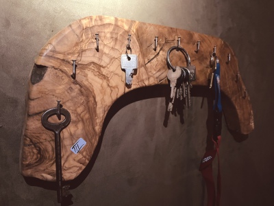 Jedes Board hat 11 Haken und 2 stabile Aufhänger rückseitig, geeignet für die große Familie mit reichlich Schlüsseln....! Bernsteinfarbige, tolle Maserung vorderseitig, Ränder teilweise naturbelassen. Die Herstellung erfolgte in aufwändiger 100% Handarbeit aus dem Holz einer mehrere Jahrhunderte alten Olivenbaumwurzel. Eine Anschaffung fürs Leben...! Und mehr als nur zweckdienlich, ein Stück Natur.